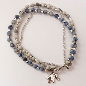 Beaded Elephant Charm Bracelet Multi Strand Blues Silver Tone Dainty Good Luck.