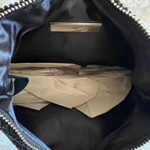 Mesh Pouch bag featuring a unique silhouette and shimmering exterior. Small sized bag; 8"W x 6-1/2"H x 2"D (width is measured across the bottom of handbag), with a 5-1/2"L handle and Magnetic snap closure