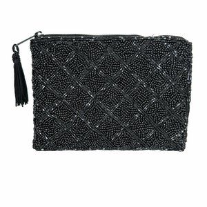 Black Beaded zipper clutch bag. Sparkly Diamond patterned bag perfect for an ID, Credit card and a lipstick! Great for a Formal event, Prom, Wedding, Date Night or anything evening!