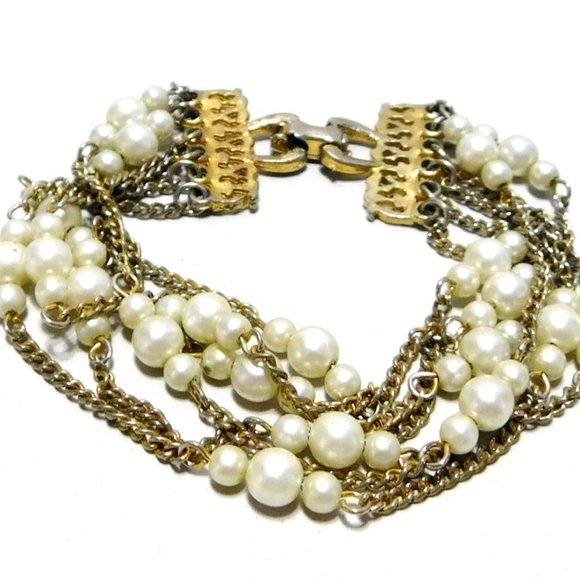 Has 6 strands with faux pearls/beads alternating