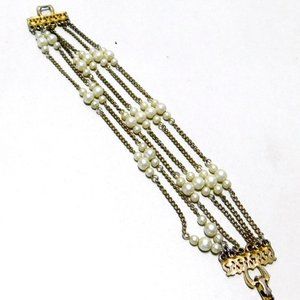 Beaded Faux Pearl 6 Strand Bracelet 7 5/8" Long