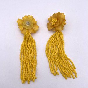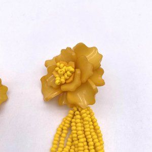 Beaded Flower Dangle Drop Long Tassel Earrings Yellow