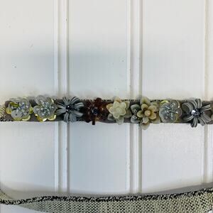 Beaded Flowers Stretch Belt Narrow Boho Shabby Chic Cottage