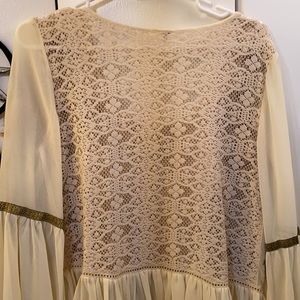 So I bought this on Poshmark ages ago and only wore it once or twice. I know it has been seen on some celebs but for the life of me can’t remember which ones. It has lovely chiffon bell sleeves, intricate beadwork and some crochet accents. It has a few pulls and faint marks that kind of just look like some flaws in the material because it is so thin but nothing noticeable. It’s actually in rather good condition.
