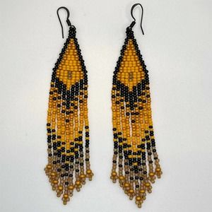 Beaded Fringe Dangle Earrings Black Orange Pumpkin Topaz Glass Beads Fall Colors