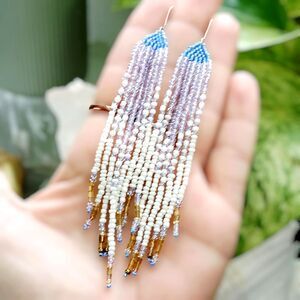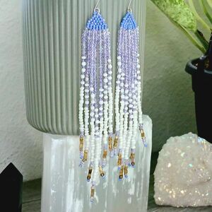 Beaded Fringe Dangle Earrings, Seed Bead Jewelry, Statement Boho Chic Artisan