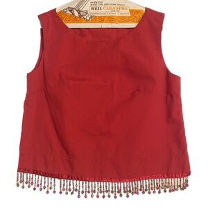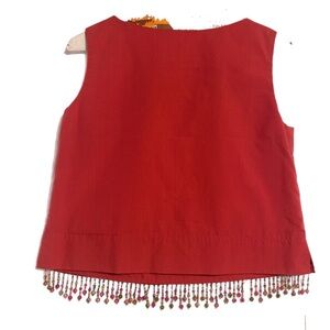 Beaded Fringe Set Festive Red Cut-off Shirt Sleeveless Blue Mini Skirt Denim Sm