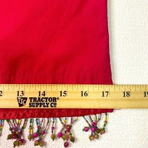 Beaded Fringe Set Festive Red Cut-off Shirt Sleeveless Blue Mini Skirt Denim Sm