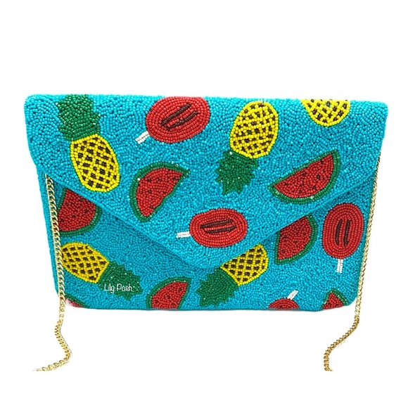 Beaded Fruit Crossbody Clutch Bag, Boho Turquoise Fruit Bag, Lily Posh