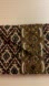 Elegant clutch with intricate beadwork and geometric patterns. Features black, gold, burgundy and cream colors. This clutch is in excellent condition. It measures 10.9 inches long and 7 inches tall.