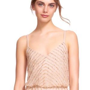 Travel back in time wearing this sublime evening gown from Adrianna Papell 91866700. Thin straps lead to the lavish loose fitting blouson bodice coated in chic glittering stripes for a flattering and chic style. More twinkling scalloped embellishments shimmer as this lavish ensemble slides to the full-length hem creating a picture perfect red carpet look.