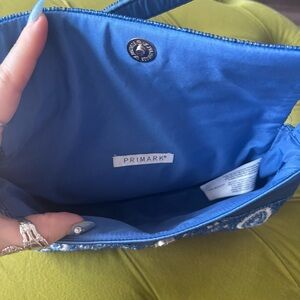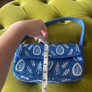 Blue and white paisley beaded handbag