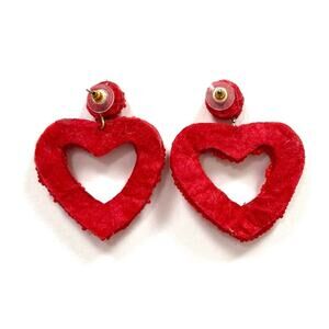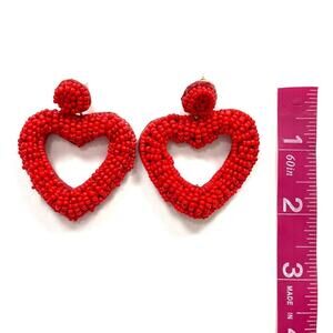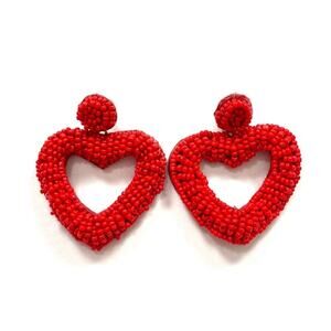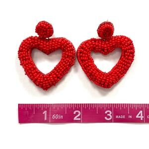 Red beaded statement earrings in the shape of hearts