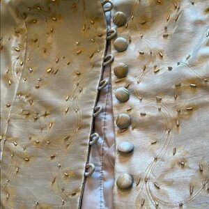 🔸Style/Details: Jacket – high neck, covered front buttons, 3/4 sleeves; Dress – maxi length, sleeveless, back slit, invisible back zipper