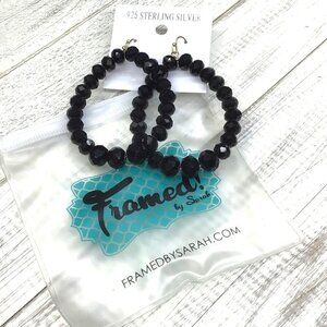 Beaded Hoop Earrings Black Beads 925 Silver Hooks