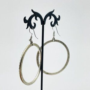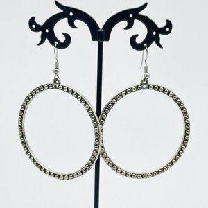 Beaded Hoop Earrings Pierced Silver Tone Boho Festival Music Party Holiday