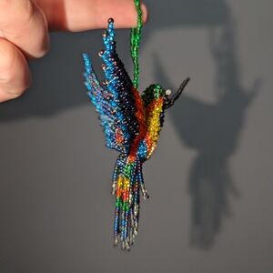 Add a touch of elegance with this beaded Hummingbird Keychain. Handcrafted with intricate beadwork, this vibrant accessory is perfect for keys or bags and makes a thoughtful gift for bird lovers.
