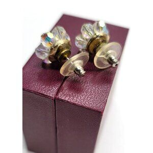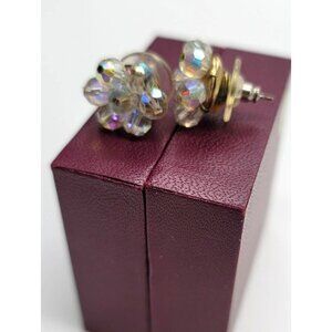Silver tone metal in a floral shape clear beads with iridescent colors in post style.