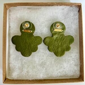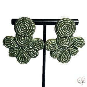 Beaded Leather Flutter Woven Green Statement Earrings (J.Crew)