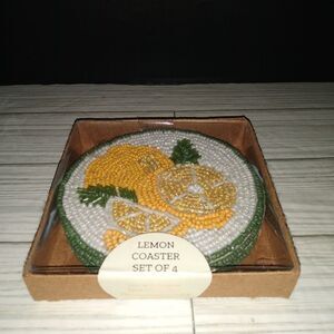 Beaded Lemon Coasters Set of 4 Lemon Slices Tropical NIB 4.5" Handcrafted India. Packaging has some wear from age and storage. Sold as is.