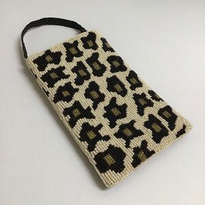 Bamboo Trading Co Hand-Beaded Leopard Cheetah print Artisan Club Bag. Versatile purse can be a Crossbody bag, wristlet, clutch or wallet. Even has a snap on the handle that can be attached to a belt loop.