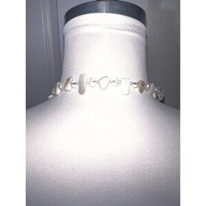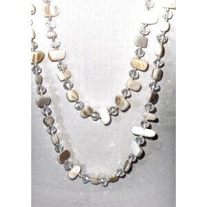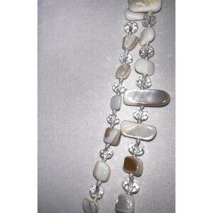 Beaded Long Necklace Off White Shell And Crystal Beads. Beautiful.