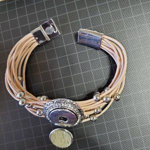 Beaded Magnetic closure multi strand 7" bracelet with unique Button Snap Charm