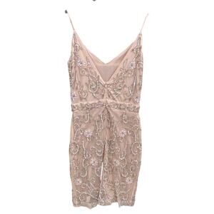 Beaded Mini Dress, Blush Pink, Lined, Formal, Intricate Beading, Sz S