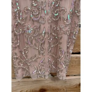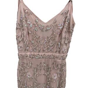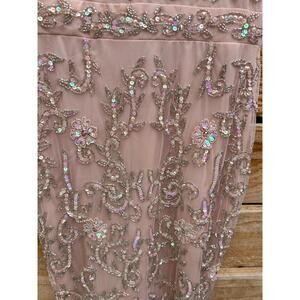 Intricately beaded blush color lined formal dress. Perfect for homecoming, prom, dances, weddings . The beads create an antiqued effect. The beadwork is heavy and well done. Truly a classy and elegant dress that is clearly high quality and a gorgeous antiqued blush color. Sz S