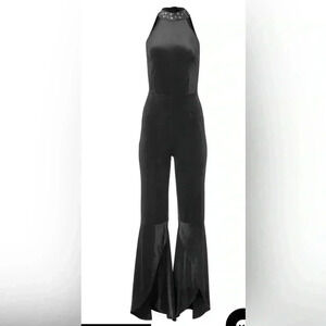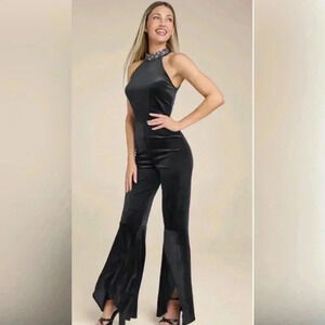 Beaded Mock-Neck Velvet Jumpsuit Multiple sizes