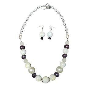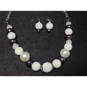 Beaded Multi Color & Size Adjustable Necklace w. Matching Earrings