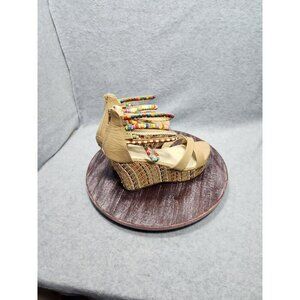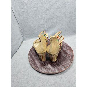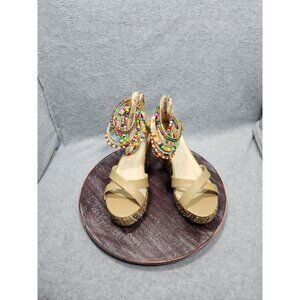 Beaded Multicolor Wedge Sandals With Ankle Straps & Zipper Closure