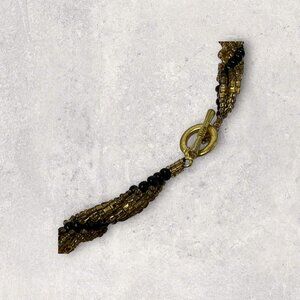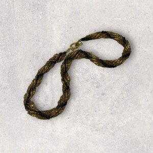Beaded Necklace Black Gold Braided Elegant Evening
