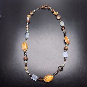 Beaded Necklace Gemstone Shell Glass Wooden Pearl Boho Copper Leaf Toggle