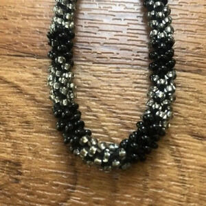 Beaded Necklace Jewelry Fashion Accessory Black Silver Tone Strand