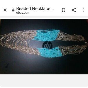 Beaded Necklace Silver-toned Metallic Silver & Turquoise Hangs 15" Long / o. d.