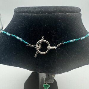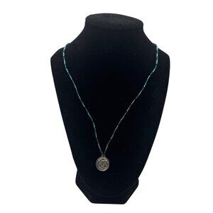 Beaded Necklace Teal Glass Silver Celtic Inspired Pendant 21 Inch Toggle Clasp