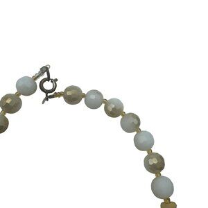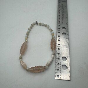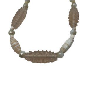 Beaded Necklace With Carved Glass And Stone Beads 15 Inch Adjustable Clasp