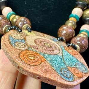 #bohemian #artisannecklace #statementnecklace #resinpendant #earthtones #bohostyle #handcraftedjewelry #eclecticjewelry #southweststyle #uniquejewelry, Boho/hippie, Earthy/spiritual, global, ethnic