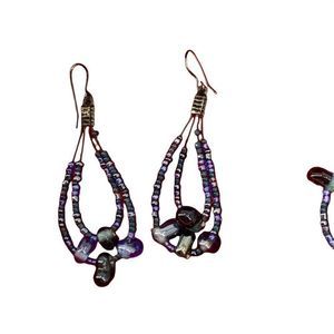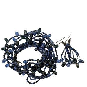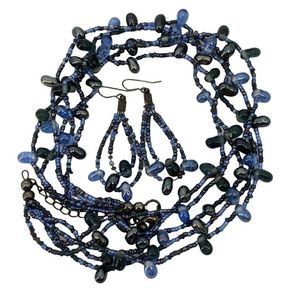 Beaded Necklace Earring Set Faux Lapis Nugget Blue Multi-strand Fashion Lot 0351