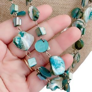 Beaded Necklace Turquoise Dyed Abalone Shell Beads