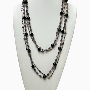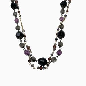 2. Small purple, smoky gray and rhinestone beads. Lobster clasp -INC Brand