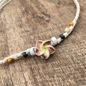 Beaded Plumeria Flower Braided Macrame Boho Beach Anklet