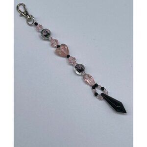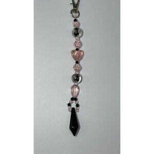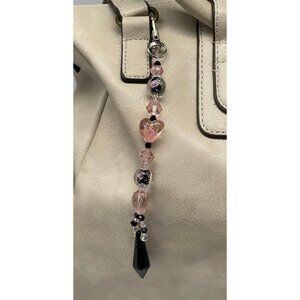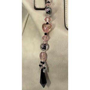 Beaded Purse Charm Suncatcher Pink Black Crystal Prism Roses Heart