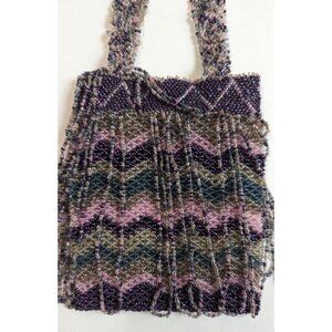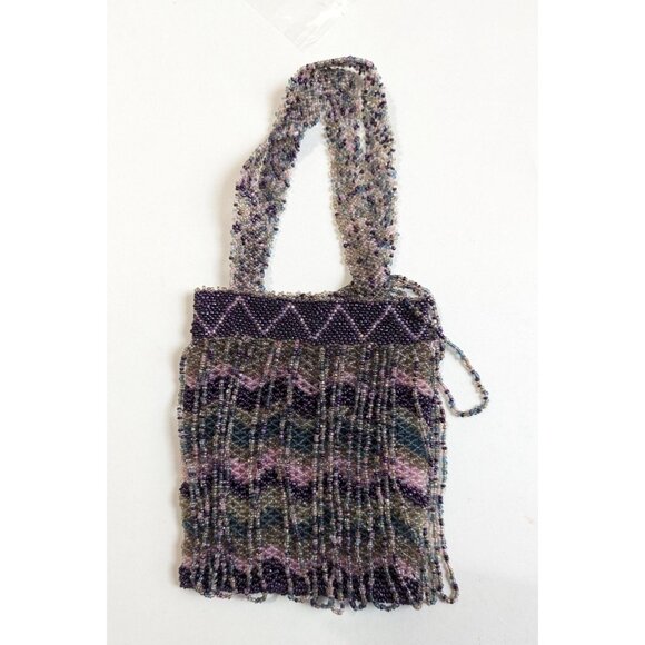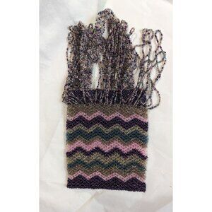 Beaded Purse Woven Small 6 Inch Handbag Multicolor Purple Silver Chevron Bead De