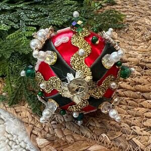 Beaded Push Pin Satin Thread Ball Christmas Ornament Mid Century Vintage Style