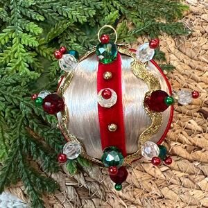 You will receive the ornament shown in photos. Add to a bundle to automatically save an extra 25% off 2 or more. Ornament may be a mix of modern and vintage supplies- this includes the ribbon and trim, brooches, buttons or other focal pieces, beads as well as the satin string balls. I do not know the age or story of everything used. Beads may be resin, plastic, glass, etc. Some pieces may be all modern and some a mix. Some of the vintage string balls may have loose threads. You may see exposed glue or even the white foam in a few spots. They do have a traditional ornament top. You will need to add a hanger or string of your choice for hanging. These are all one of a kind. They are handmade and may have imperfections as a result. Some may not be perfectly symmetrical but they are perfectly kitschy. They are sold as is. Each ornament is listed individually and will ship in a simple kraft box inside a larger mailingbox. Hopefully this will protect any beads and pins from coming loose. If so any dab of craft or hot glue works. ▪️Measurements are approximate only ▪️See photos as they are part of the listing and description ▪️Please note colors may vary in person from on screen ▪️Bundle your likes to save ▪️No modeling or trades ▪️Smoke free home ▪️Pet friendly ▪️Quick shipper ▪️❓ask