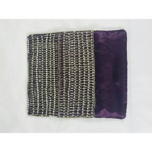 Beaded Rhinestone Dark Purple Foldable Evening Bag Clutch