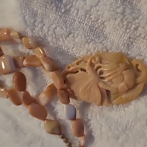 Stratified coloration with sculpted Rhodacrosite gemstone pendent 20" 2" pendant, solid sterling toggle clasp