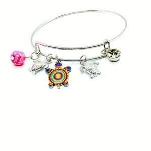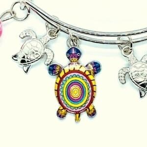 Beaded Sea Turtle Charm Colorful Bangle Bracelet